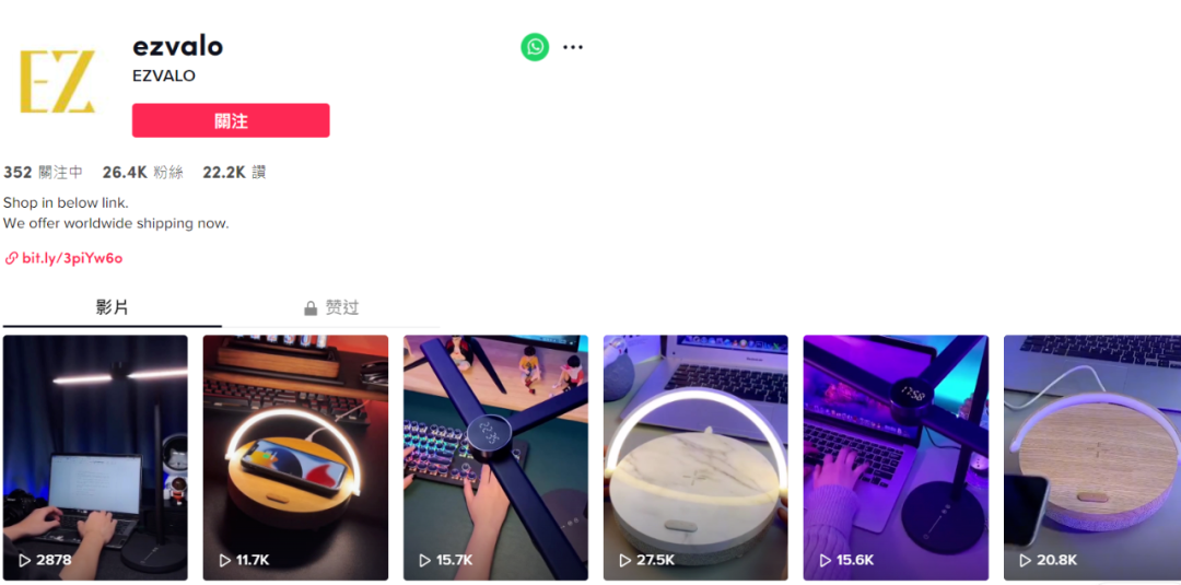 截至目前,在TikTok上“EZVALO”已拥有26.4K粉丝,以及22.2K的点赞数。