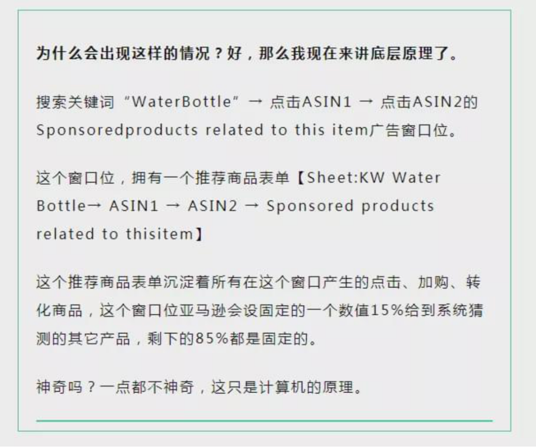 通过①②③这个路径到达这个流量窗口位置④ ASIN2下的广告推荐,这个窗口位的推荐结果是固定的,固定百分比达到85%以上。