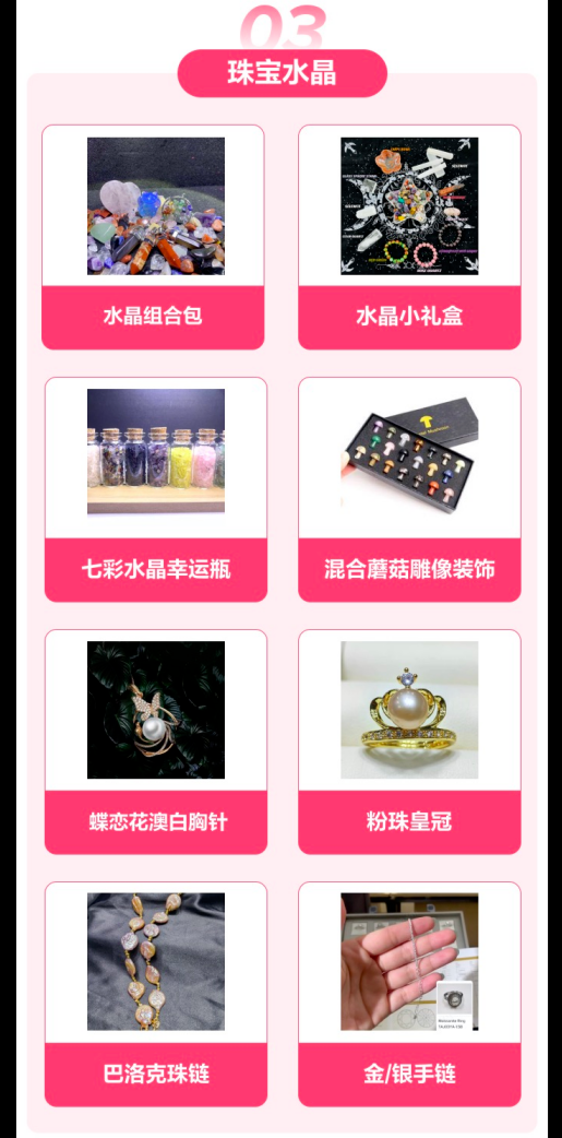 珠宝水晶类目比较火爆的都是一些可以用来diy的物品或是小件的珍珠饰品、手链。这块分类是新增的统计项目,在此之前的半月报是没有的。