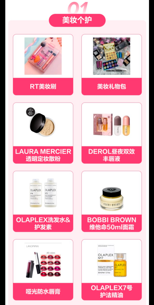 首先是各大电商平台永远最受关注,也是人气最高的【美妆个护】类目,RT美妆刷和散粉一直是榜上常客,另外可以看出本类目销量较好的都偏日常基础款的化妆品。