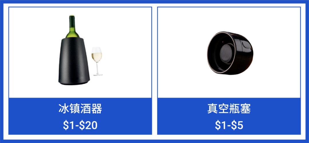 酒类周边商品中,真空瓶塞、冰镇酒器、量酒杯、倒酒器热度一直较高。冰镇酒器能使酒快速冷却,当地人喜欢往酒杯里再加冰块,起到降温解暑作用。真空瓶塞插入瓶口,再拉动活塞杆,就可以抽出瓶内空气,能延长酒开瓶后的保质期,是爱酒人士家中必备。