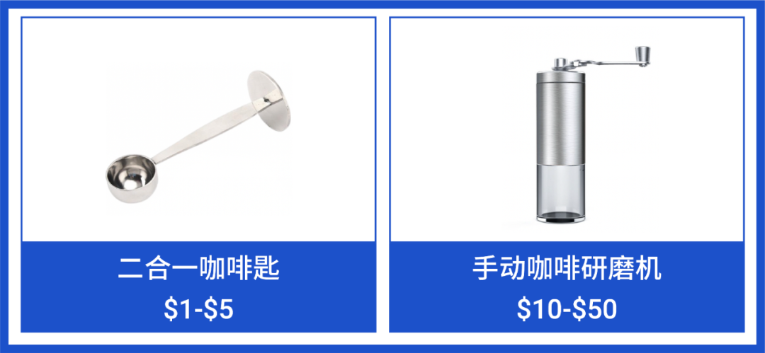 二合一咖啡匙既能量取咖啡粉又能压粉,实用性强,在当地销量高。比起咖啡机,手动咖啡研磨机磨出来的咖啡味道更浓郁,受当地爱喝咖啡人士青睐。