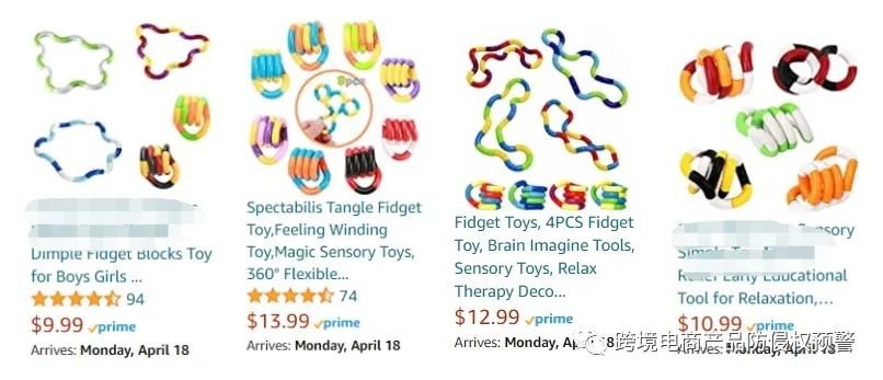 “扭扭圈减压玩具”在亚马逊美国站上有很多很多企业正在售卖,下面是部分销售截图: