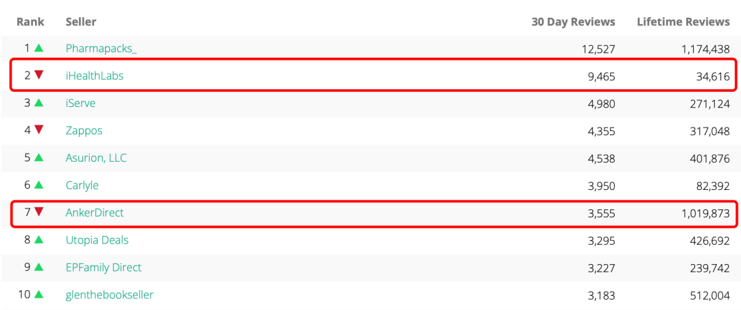 作为对比,Anker的主店铺AnkerDirect还一直保持在第7位。