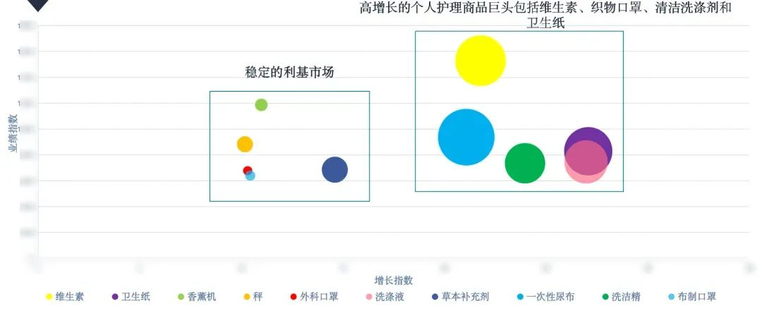 ◾ 2020年起,高增长的个人护理商品巨头包括维生素、织物口罩和卫生纸。