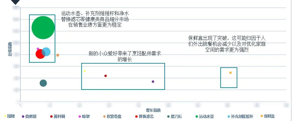 ◾ 运动水壶、补充剂摇摇杯和净水替换滤芯等健康类商品细分领域在销售业绩方面更为稳定。