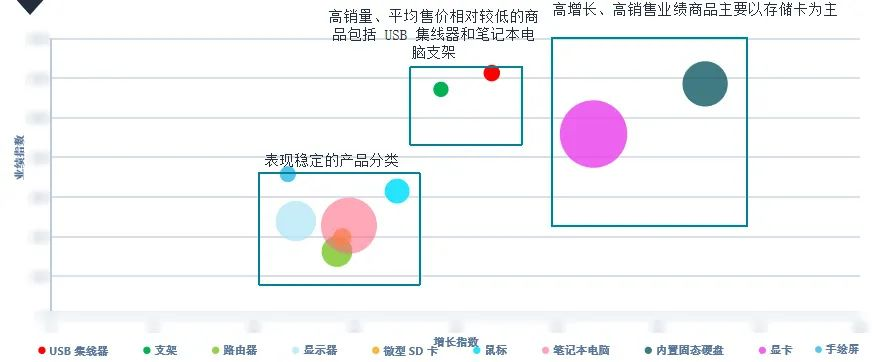 ◾ 高增长、高销售业绩商品主要以存储卡为主。