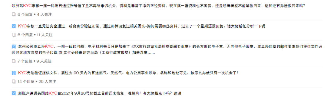 为什么卖家们对于亚马逊KYC有如此大的敌意呢?据卖家反映,如果每个账号都要KYC的话,预计应该有4成以上的账号会挂,因为卖家手里很多账号是买的,要么资料有问题,要么无法联系法人等等,最关键的是即使资料全部真实也有一定的几率不过。