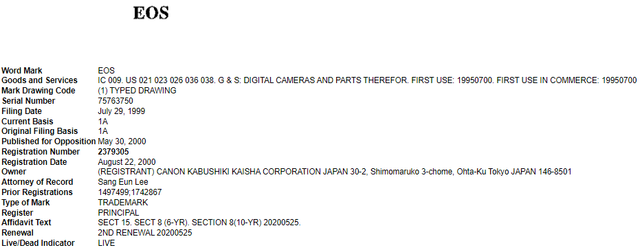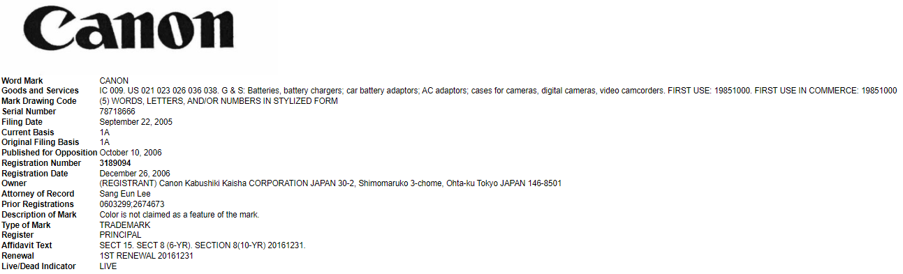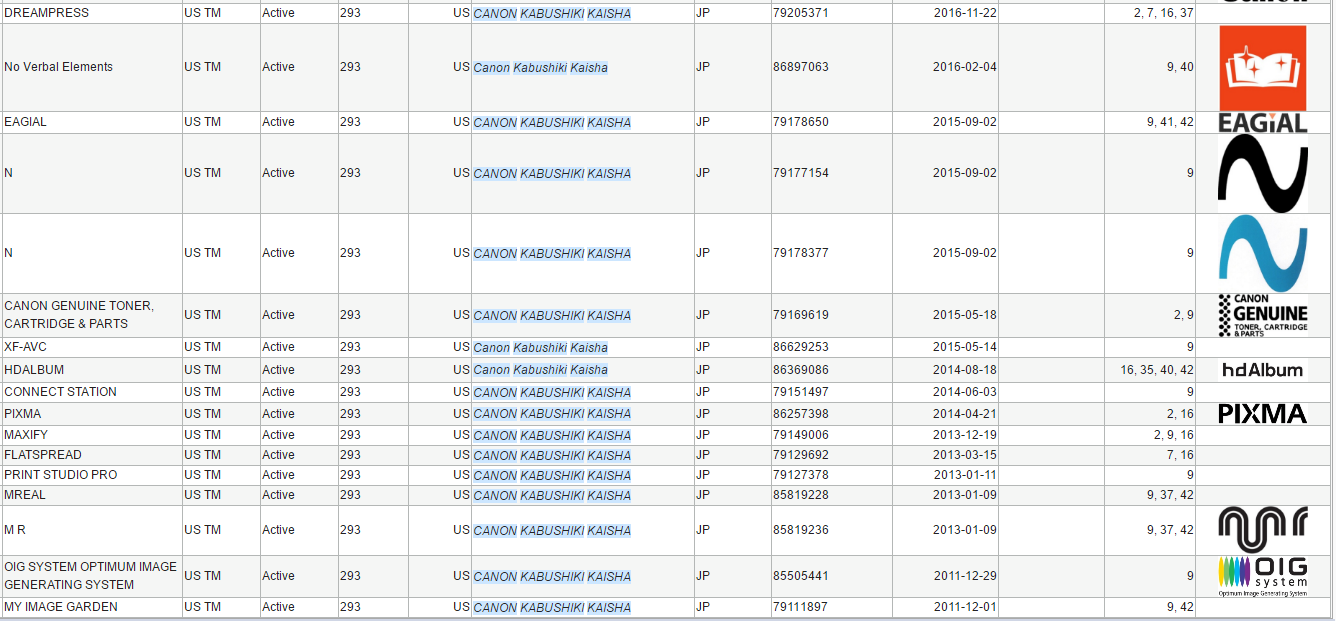 佳能旗下还拥有大量的注册商标,未经授权使用同样侵权,建议大家多查询规避: