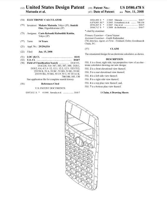 专利侵权主要涉及以下计算器外观专利,如果售卖产品与之高度相似,极有可能被判侵权: