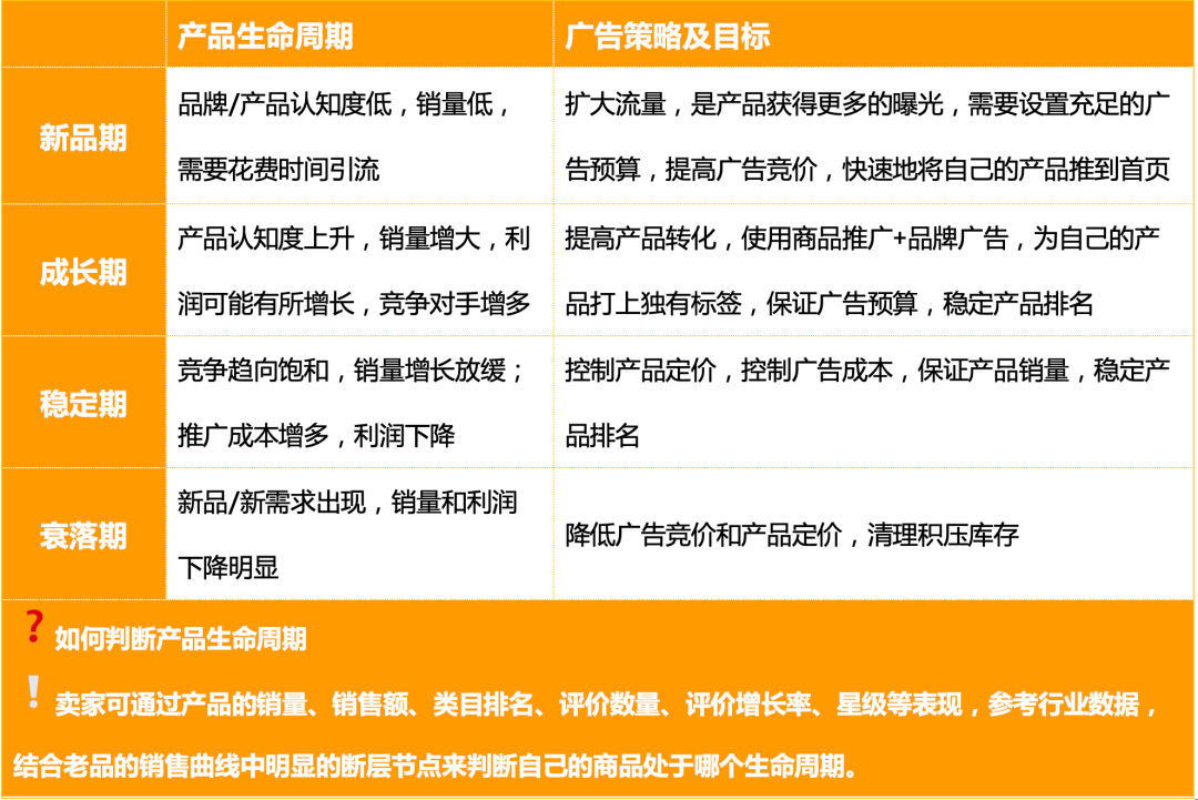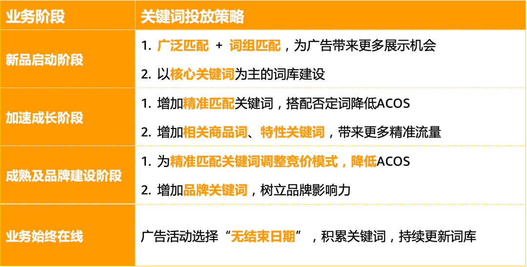 ‼️卖家可参考下方的业务各阶段的关键词投放策略: