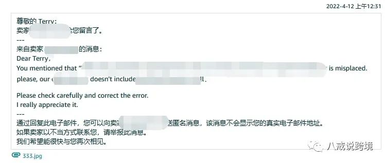 当时我直接加了一封信,说明了事情的来龙去脉(但没有出现违禁词)。后来我还附上了产品的主图,就是告诉买家他的评论放错地方了。