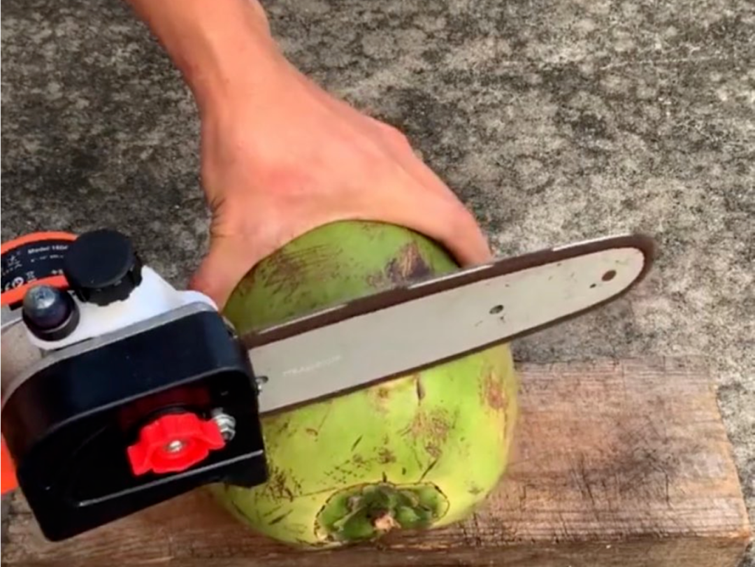 当然,电动工具的使用范畴也不仅仅局限在装修和组装。在生产椰子的泰国,不少电锯的消费者为了提升工作效率,还会用电锯开椰子。