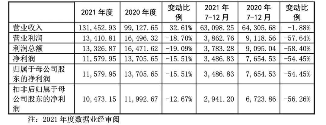 根据经审阅财务数据,2021年公司营业收入13.15亿元,同比增长 32.61%,扣非后归属于母公司股东的净利润1.05亿元,同比下降 12.67%。如未来原材料价格上涨、汇率波动等不利因素继续存在,则公司存在经营业绩下滑的风险。