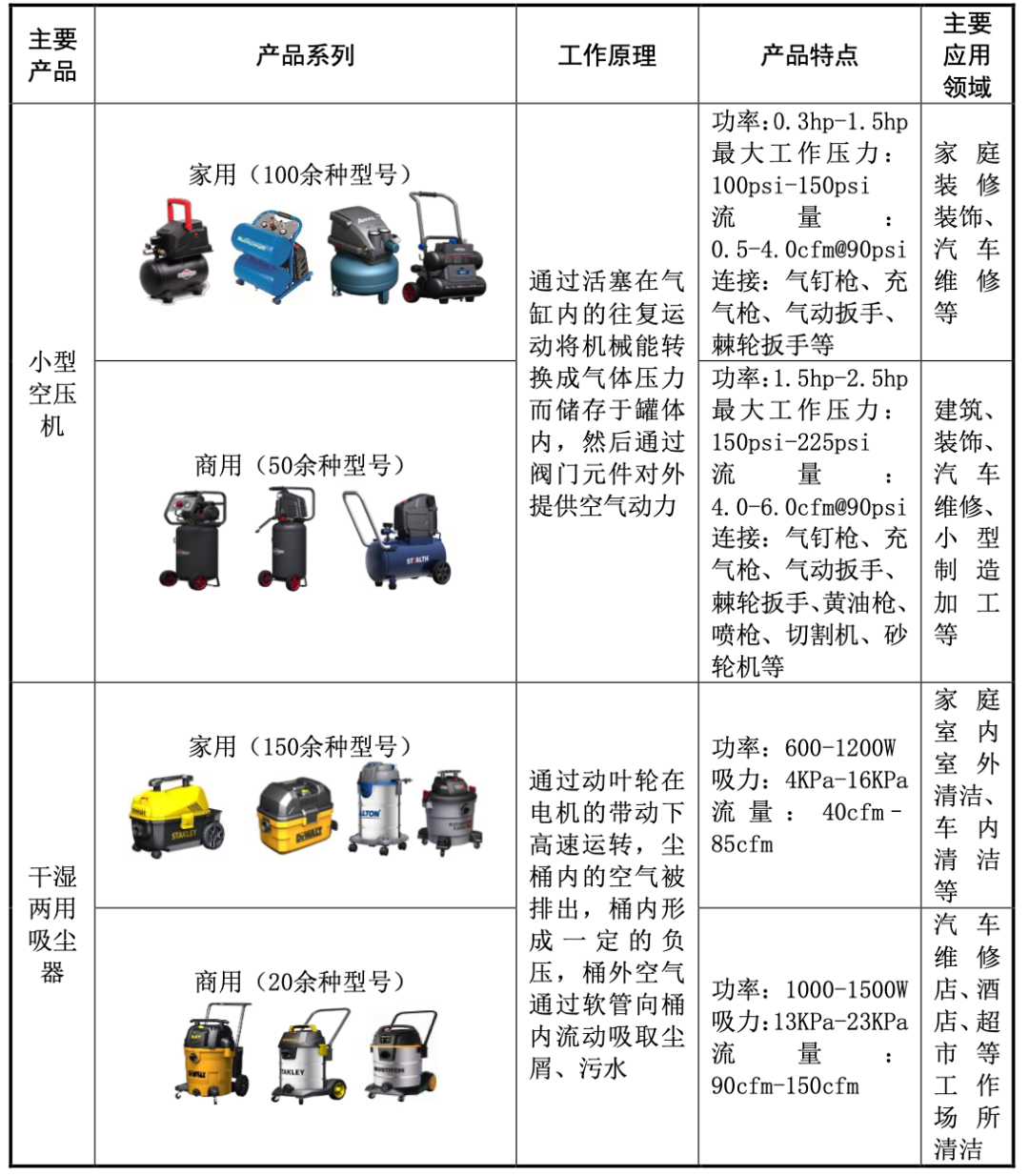 欧圣电气的小型空压机和干湿两用吸尘器产品大致长这样,适用于家居和商用等多个场景。