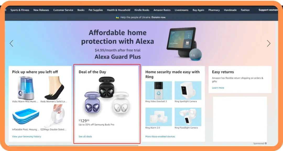 首页Deal of the Day镇店之宝,一年能爆一次,这里可以进去看所有的Deal,就是所有的折扣,Coupon,Promotion,还有会员专属折扣等都是有专属的流量入口的。