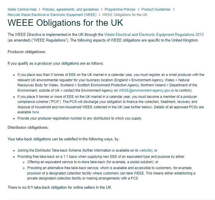 以上就是英国WEEE相关资讯,目前亚马逊还没有强制英国站卖家注册WEEE,但不排除亚马逊将来会出台和德国包装法一样的强制政策。