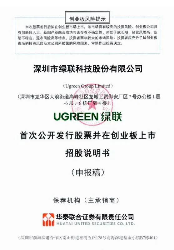 2022 年 6 月 2 日,深圳市绿联科技股份有限公司发布招股说明书(申报稿),向创业板提交上市申请,这是继安克创新(Anker)、公牛集团(BULL)外,又一个耳熟能详的消费电子品牌奔向上市敲钟。