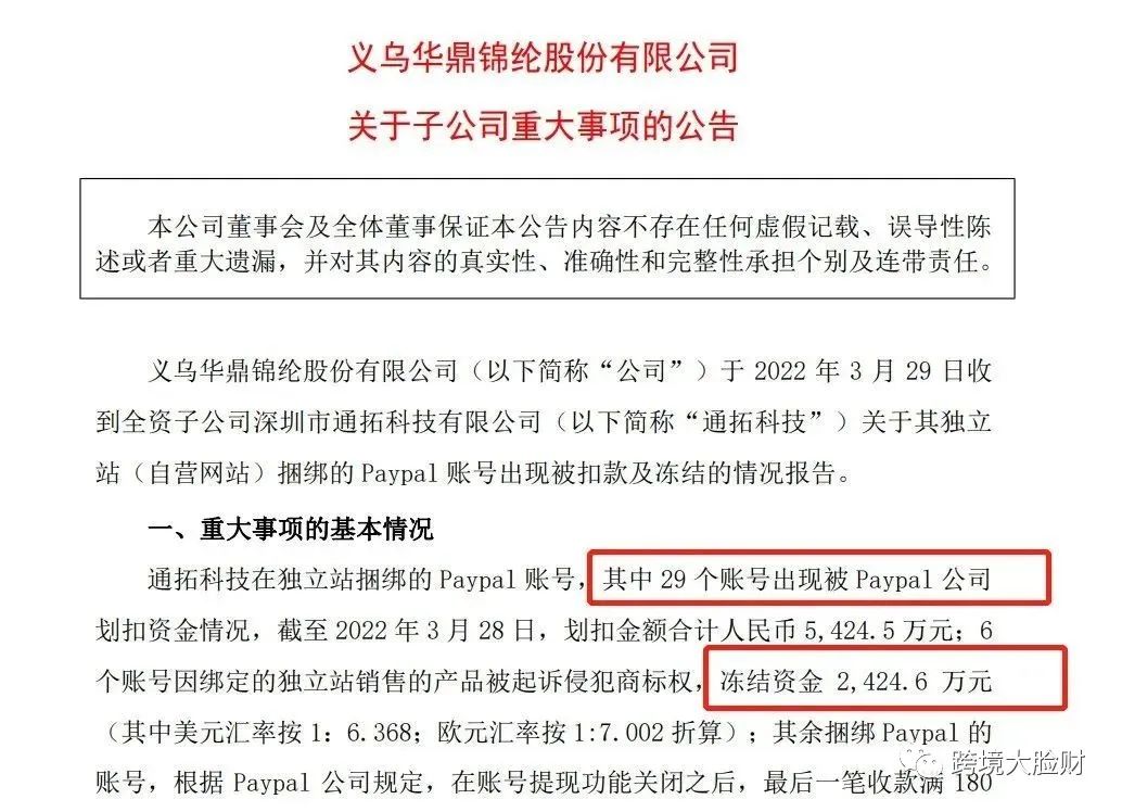 除了中小独立站卖家被封以外,其中也不乏通拓这样的大卖,被扣款5400多万。