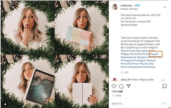刚开始建立频道时,也可以尝试创立一个标签。非常简单,只需要#号和你的品牌名称,例如#apple。当然,一开始可能只有你自己使用这个主题标签,但随着账号和店铺的持续运营,就会有人陆陆续续开始用你的主题标签进行购买产品后的分享,也就是“晒图”。这能帮助你的账号以及产品进一步扩大影响力。