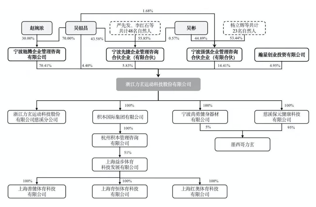浙江力玄运动科技股份有限公司设立于2018年,总部位于浙江慈溪市,设立时注册资本为 8000万元,总股本为8000万股,起点还是非常高的。截至2021年底,公司的股权架构如下: