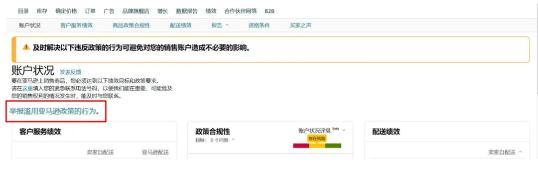 如果遭遇到了滥用亚马逊政策的侵害行为导致账户健康受损的情况,卖家可及时通过官方渠道举报,及时维护自己的权益和账户健康状态。