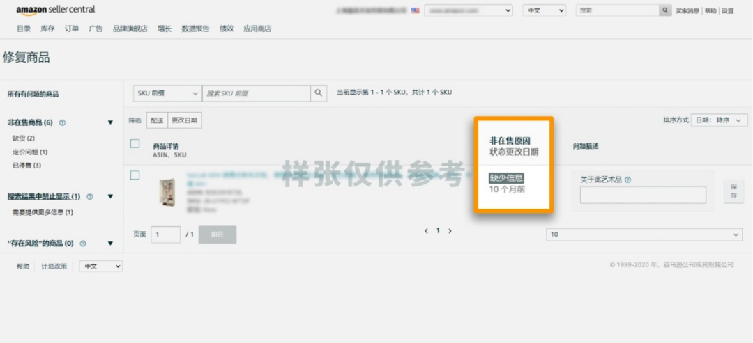 在“修复商品”页面点击“搜索结果中禁止显示”查看详情