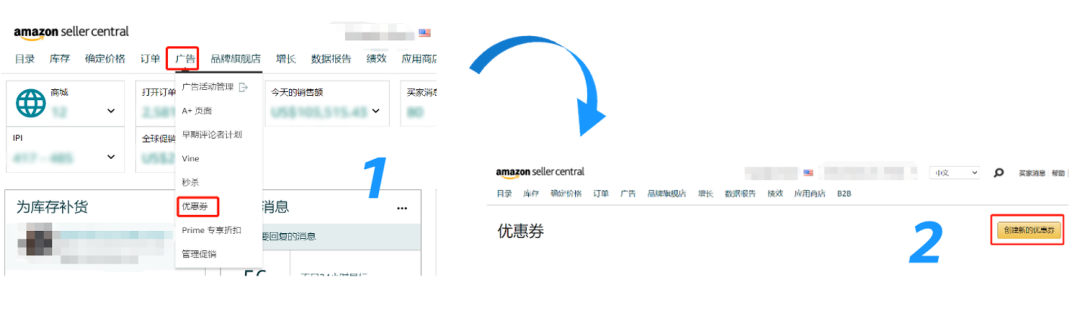相信各位卖家已经依照上文自查表对促销活动进行了全面检查。距离Prime会员日开幕还有一周的时间,很多卖家已经提报了促销活动,还没有提报的卖家也不要慌,在这个时间节点,依旧可以继续提报优惠券和Prime专享折扣。小编先来介绍一下提报两种促销活动的步骤。