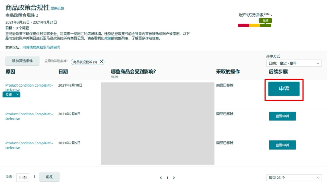 对于“账户停用”和“政策合规性”问题,可通过卖家平台的【申诉】按钮提交行动计划,修复账户健康问题: