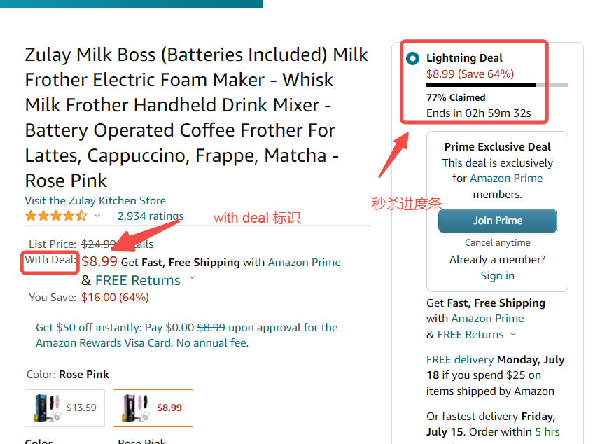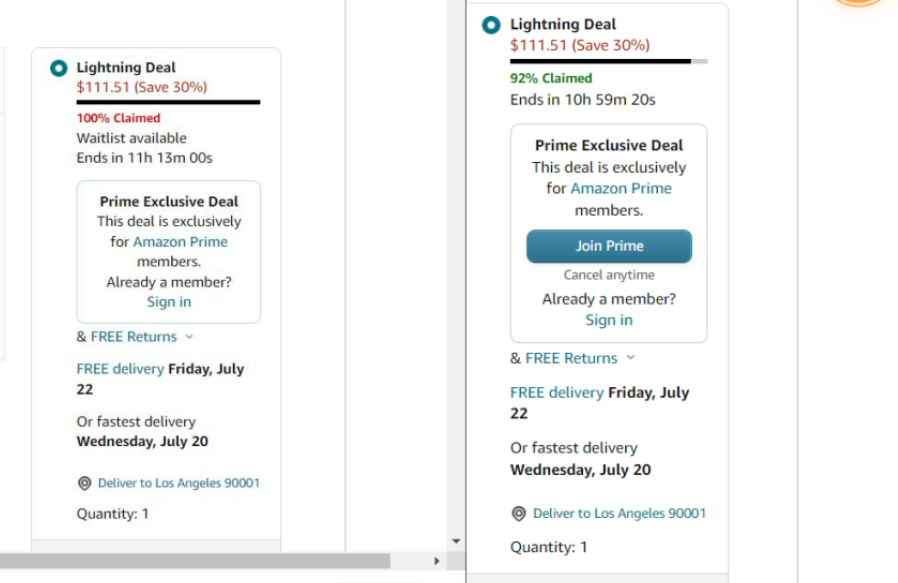 Prime day 秒杀详情页面: