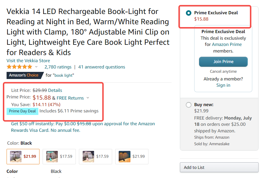 Prime day 期间,正在进行会员日秒杀或者设置会员日专享折扣的产品,都会有Prime day deal 浅蓝促销标识