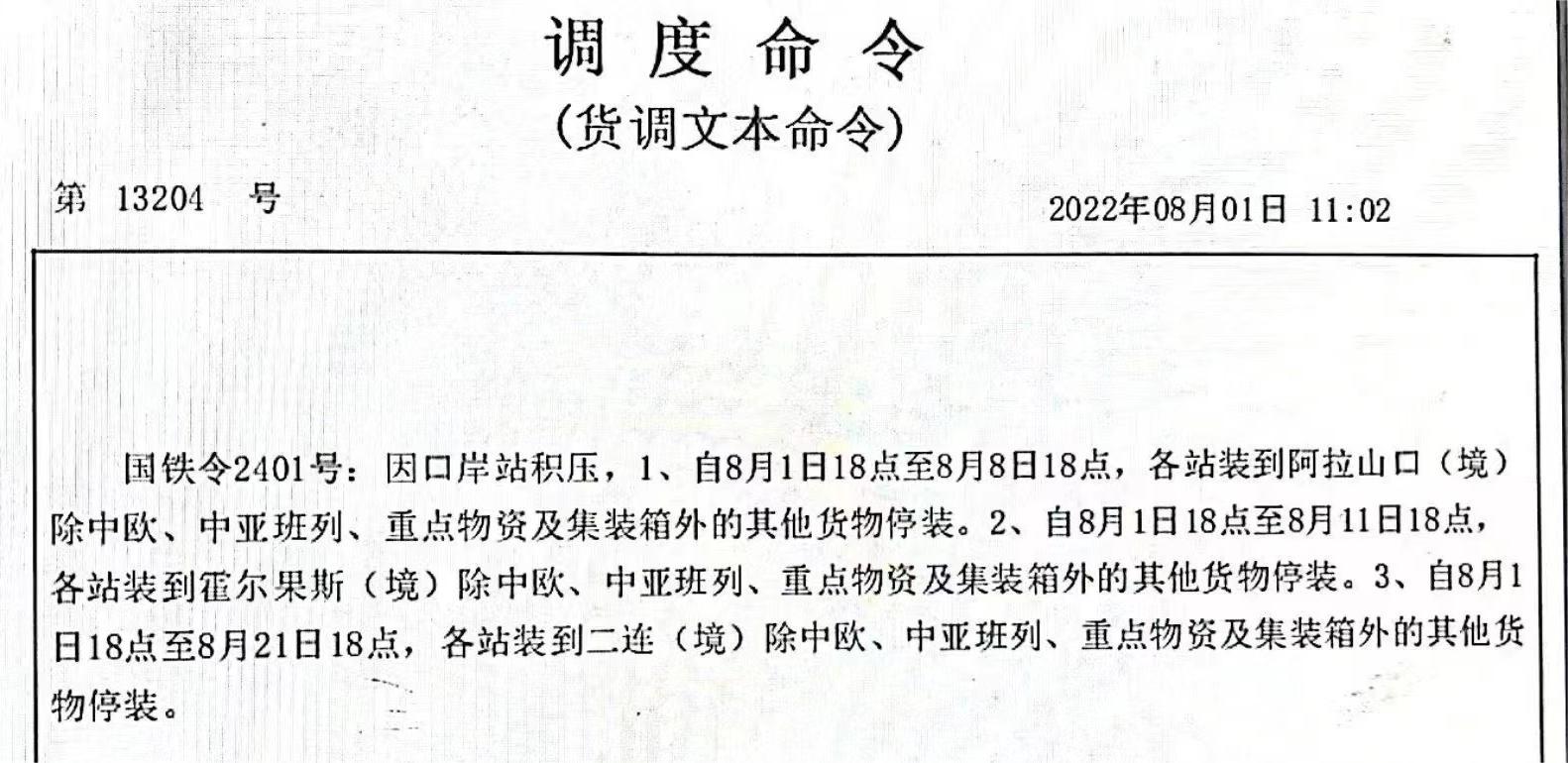 一则有关2022年8月1日颁布的国铁令2401号近期在物流圈流传,有不少货代公司及物流媒体,略掉了“除中欧、中亚班列、重点物资及集装箱外”的其他货运停装,只是一味宣传中欧三大口岸货运一律停装。