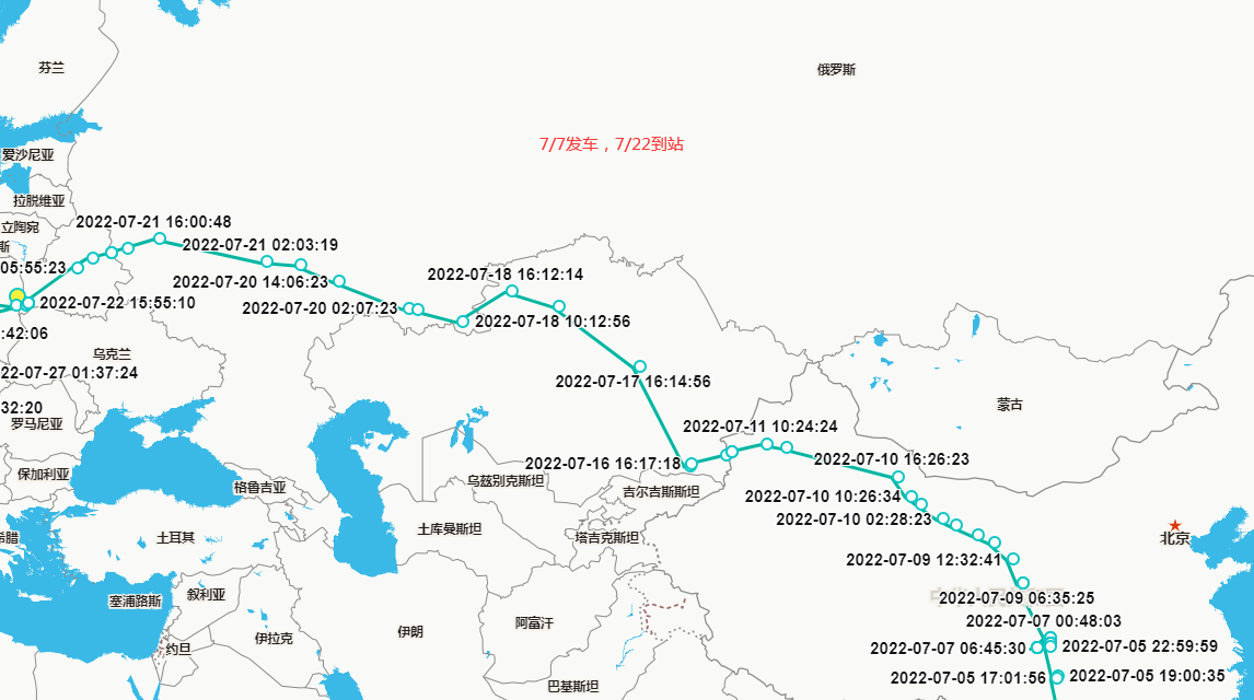 实际上,我们进行中欧铁路测试后,根据前线同事传来的近几个月货运GPS路线时效显示,中欧班列一直都在正常运行,根据定位图反馈,班列在哈萨克斯坦境内运行相对缓慢,但并没有出现严重拥堵现象。