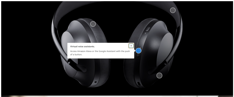 此外,高级A+还允许卖家添加:优质视频、图片轮播、高级图片背景、交互式热点、高级问答。下图为交互式热点的展示形式: