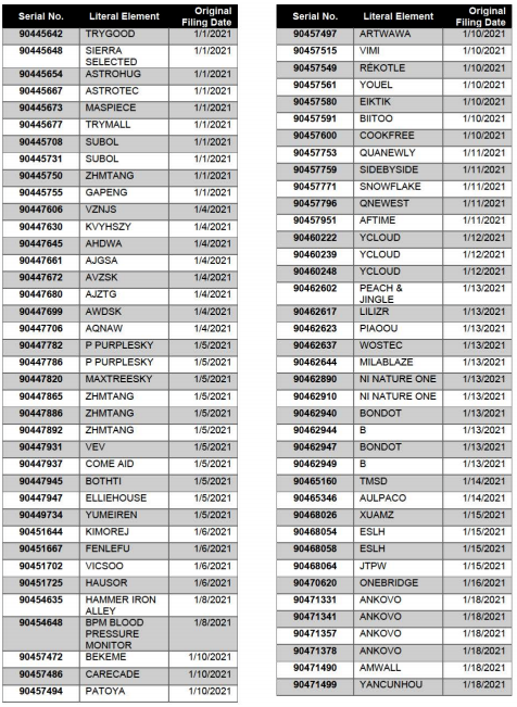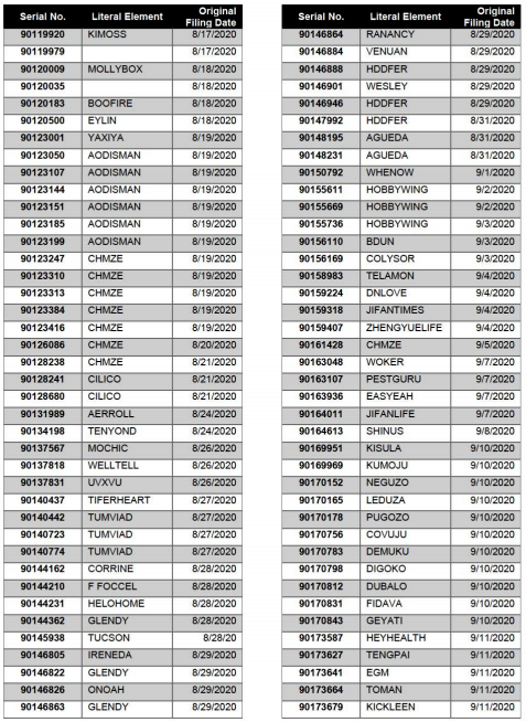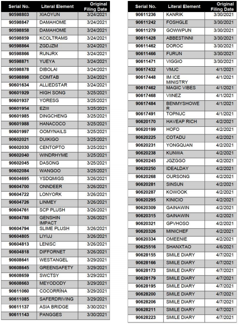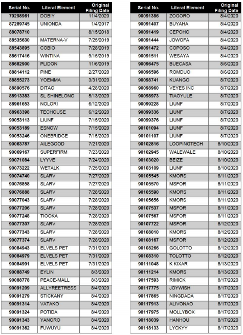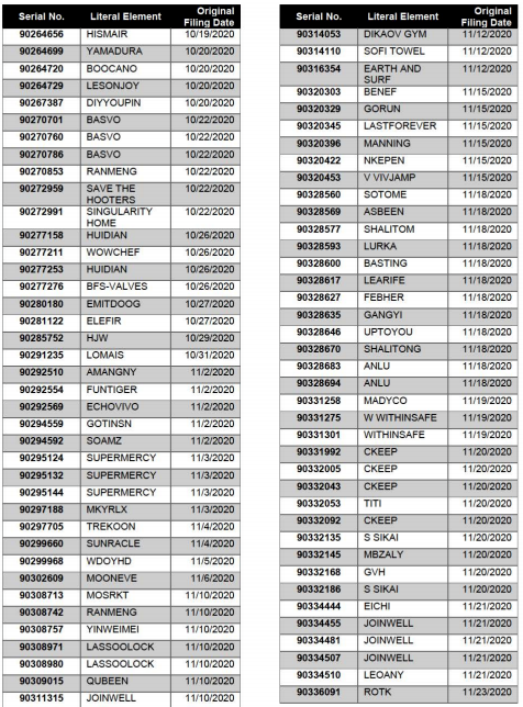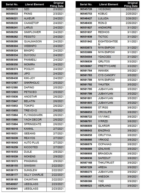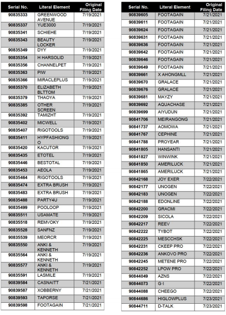 需要卖家注意的是,《理由陈述令》中也列举了该公司提交的2200+美国商标,若是9月初未能提交相应的应诉证据,这些商标都有可能会受影响。