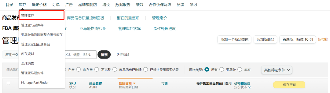 🚩 手动:在每个站点的“亚马逊物流库存”页面中检查定价。