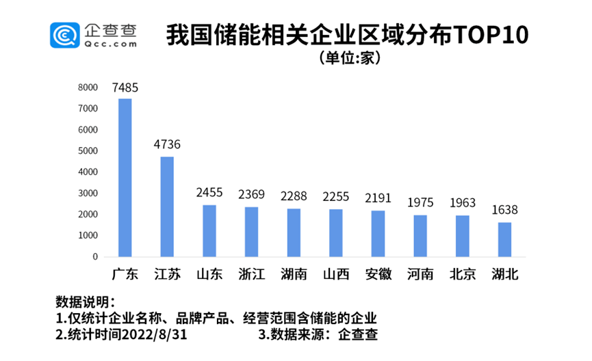 珠三角地区,更是凭借成熟的消费3C电子供应链和销售渠道,快速兴起了便携储能新产业群。根据企查查提供的数据显示,我国现存储能相关企业4.84万家,广东以7485家储能相关企业排名省份第一,深圳以4151家排名城市第一。