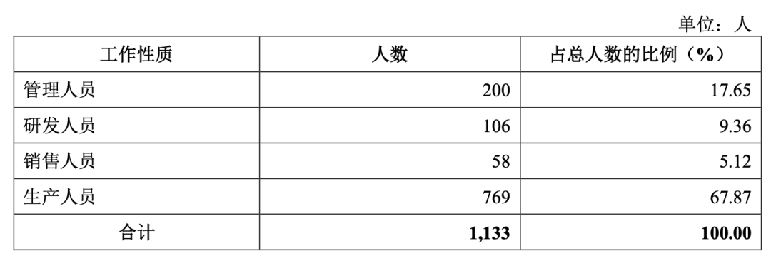 为保障长期竞争力,公司在研发、生产、供应链方面有持续的投入。截至2022年上半年底,公司员工1133人,其中大部分为生产人员。