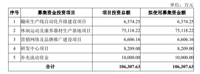 通过在创业板上市,三柏硕募资约10.63亿元,主要用于蹦床生产线自动化升级建设、休闲运动及康养器材生产基地、营销网络及品牌推广建设、研发中心等项目,同时也将用于补充流动资金。