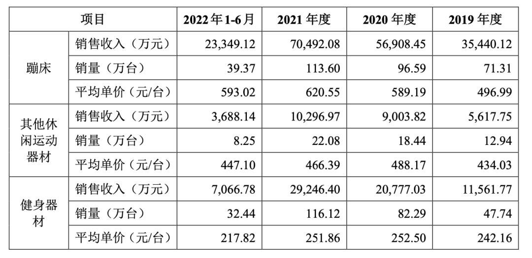 蹦床也成为公司收入占比最大的产品,各年度收入占比约60%。2021年,公司卖出了113.6万台蹦床,是绝对的销量之王。