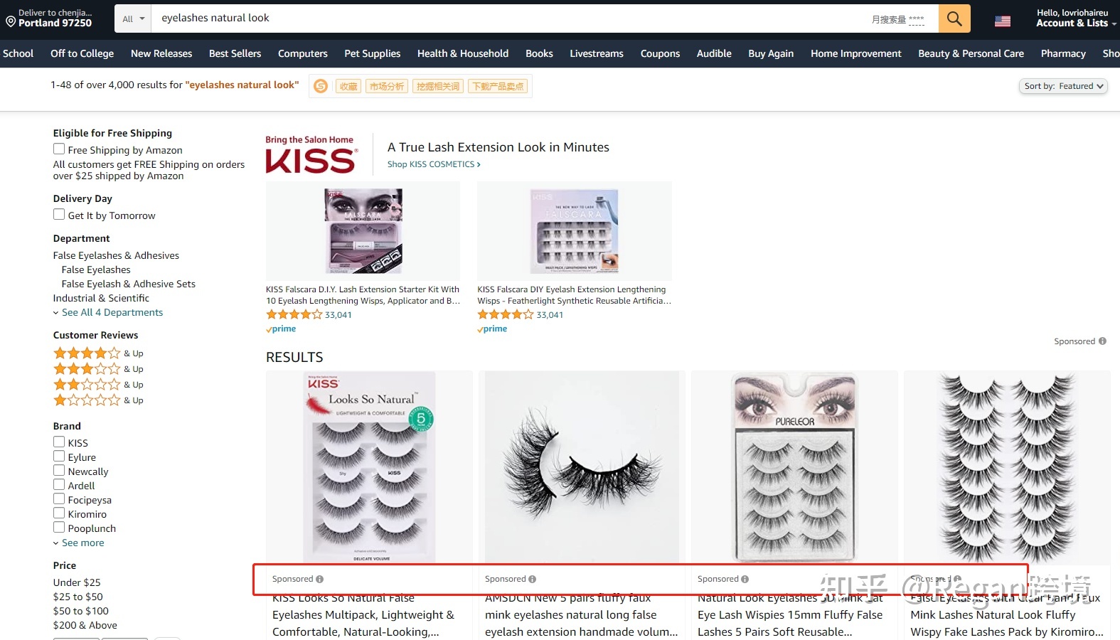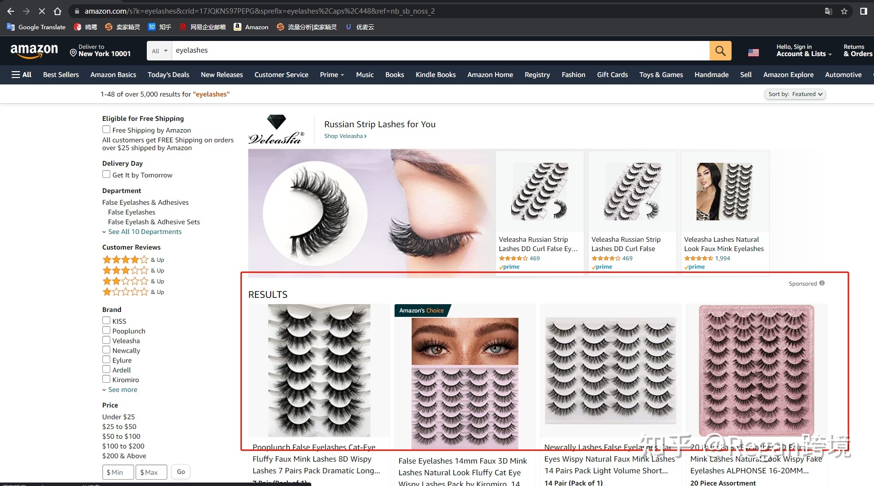 搜索亚马逊网址,输入我们要查的关键词(记得要切换为美国当地得邮编):