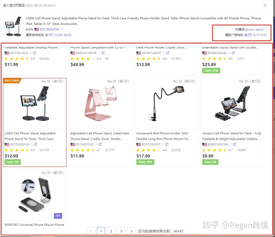 最终我们就可以得到这种形式的反馈,帮我们查看我们产品下面的关键词排名的变化,以及还可以查看到这个关键词下前三页的产品都有哪些: