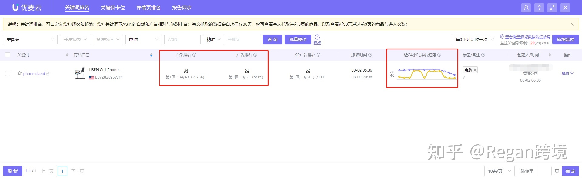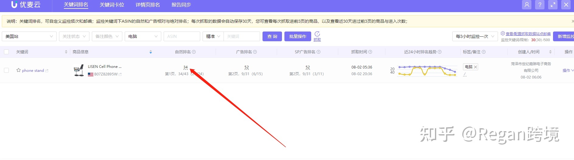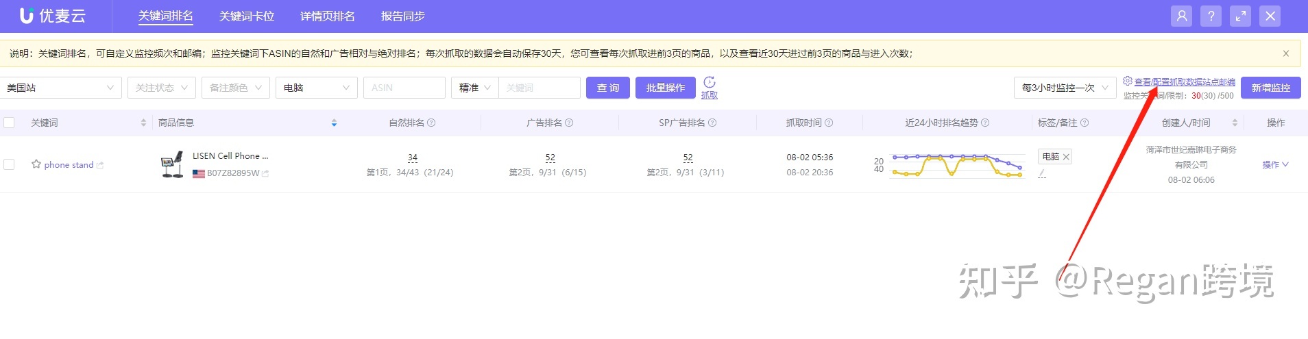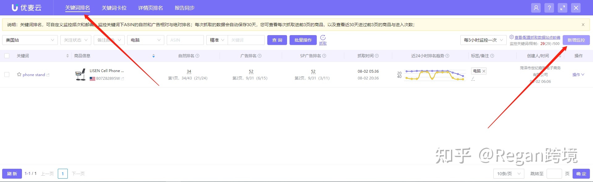 3. 通过优麦云工具监控自身产品和竞品关键词排名
