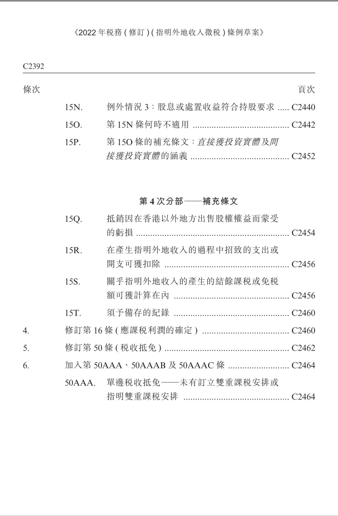 《2022年税务(修订)(指明外地收入征税)条例草案》引入新的外地收入豁免征税机制,跨国企业实体如符合若干豁免条件,其在港收取的指明外地被动收入,即利息、股息、处置股份或股权权益的收益和知识产权收入可获豁免征税。 《条例草案》仍然维持了香港的来源地征税原则,新机制不会对利润来源地的判断构成影响。在新机制下,纳税人如在香港有实质经济业务,仍可就其在香港收取的特定境外被动收入获豁免征税。此次香港税务条例有针对性的修订,是为了应对2021年10月欧盟最新发布的“税务不合作名单”所致,要求香港最迟与2023年施行境外收入豁免征税机制(FSIE),以满足欧盟的合规要求。 新的离岸收入豁免征税机制将制定经济实质要求,以防止空壳公司可能滥用香港的税务安排,以实现就外地被动收入的双重不征税情况。在新的豁免机制下,下列特定境外收入将被视为来源于香港境内的收入,应缴纳利得税: 在香港境内从事贸易、专业活动或开展业务取得的收入,不论该收入或资产的规模; 取得收入的机构不满足经济实质的要求(境外收入为利息、股息或股权出售收益)、取得收入不满足联结度要求(境外收入为IP收入)、取得收入不满足持股要求(境外收入为股息或股权出售收益)。 依据修订后的规则,如果该境外收入应在香港机构收到该收入的评税年度予以征税,这产生该收入的相关费用成本被允许进行扣除。 为了降低企业负担,避免出现双重征税的情形,只要该来自境外的收入(依据规则应在香港缴纳利得税)已在香港以外区域缴纳了利得税性质的税收,都可以在香港在额度内进行利得税抵免,无论该区域是否与香港签订了避免双重征税的协定。 跨国机构有义务及时申报特定境外收入,在规定年限内留存与该特定境外收入相关的交易记录,以备查验。 以下为香港《2022年税务(修订)(指明外地收入征税)条例草案》文件的目录,需要完整文件的小伙伴,请扫描文末的二维码联系我们索取。