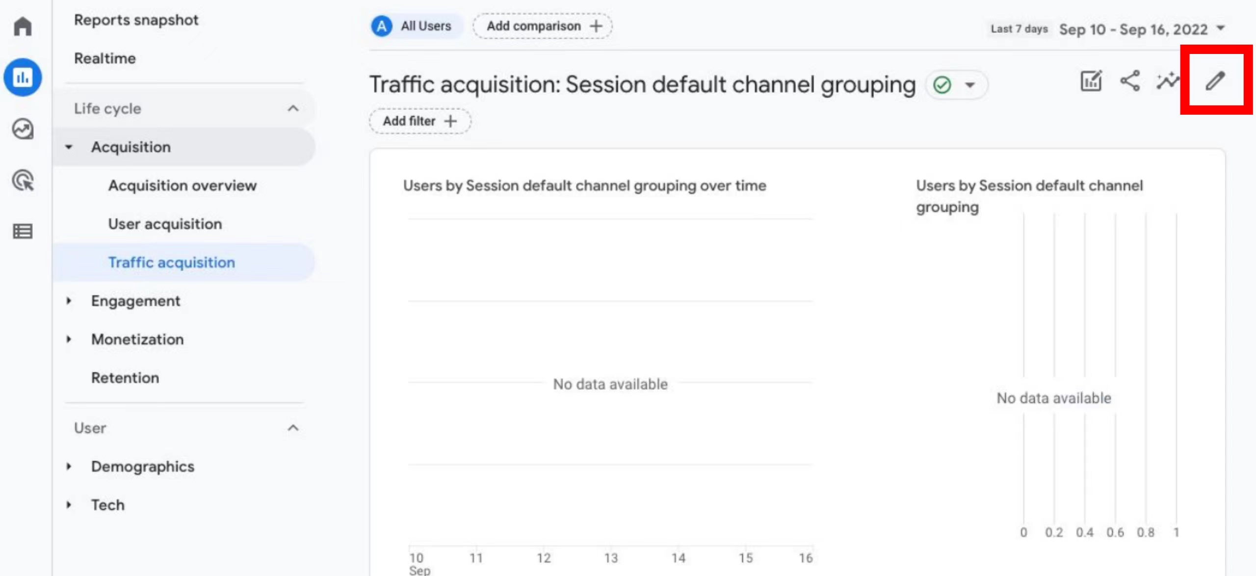 因此,您需要单击窗口右上角的小铅笔图标,通过在 GA4 中创建自定义登录页面,从而满足您的数据分析需求。