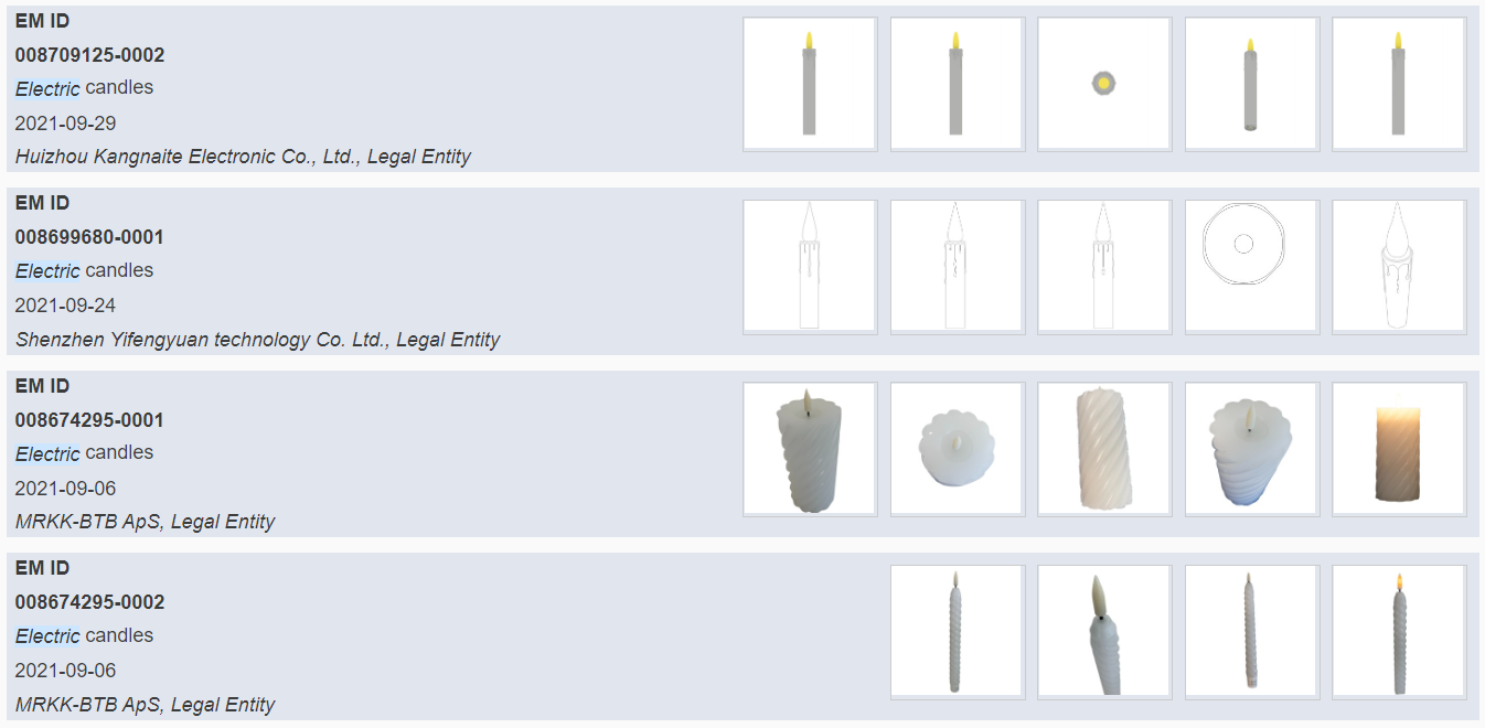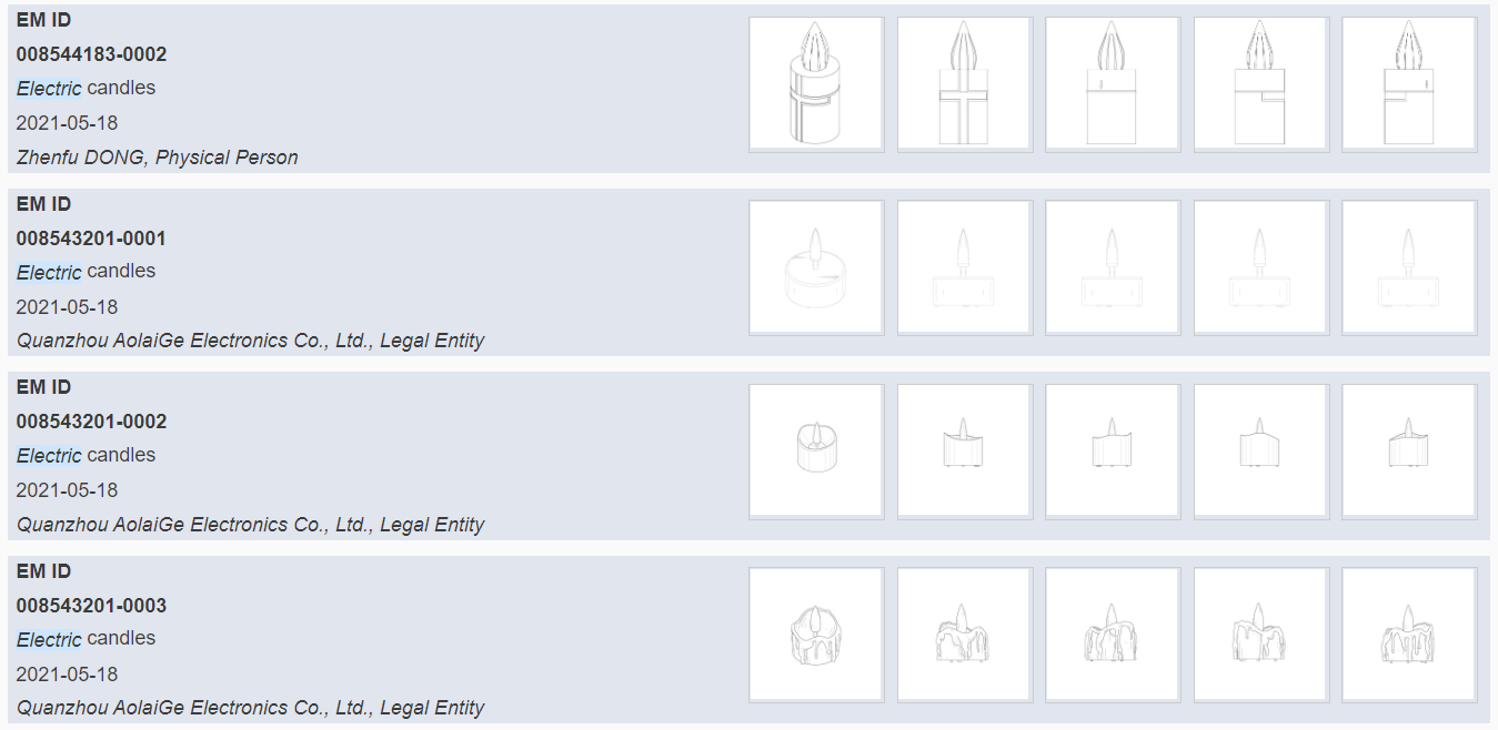 但机遇往往与危机并存,热销产品大多都存在侵权风险,蜡烛灯也不例外。查询发现了不少相关外观专利,若卖家所售产品与之高度相似,极有可能被诉专利侵权。