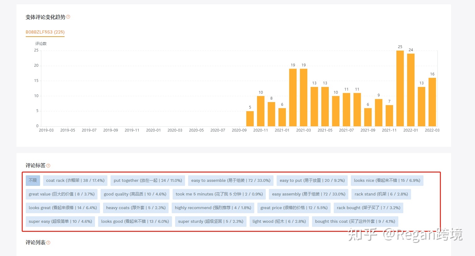 我们可以使用卖家精灵的评论分析功能,分析我们竞争对手的评论趋势以及产品痛点。