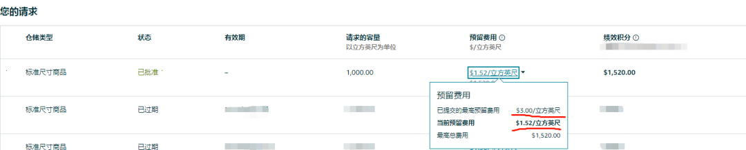 ①销售额比预计值低 20%,设定三月预估的销售额是10000美金,那么如果三月实际销售额是8000,账户就会额外支付191美金的仓库预留费用,若三月实际销售额为0美金,账户会支付955美金的仓库预留费用,实际仓库预留费用扣款限制为:0-955美金。