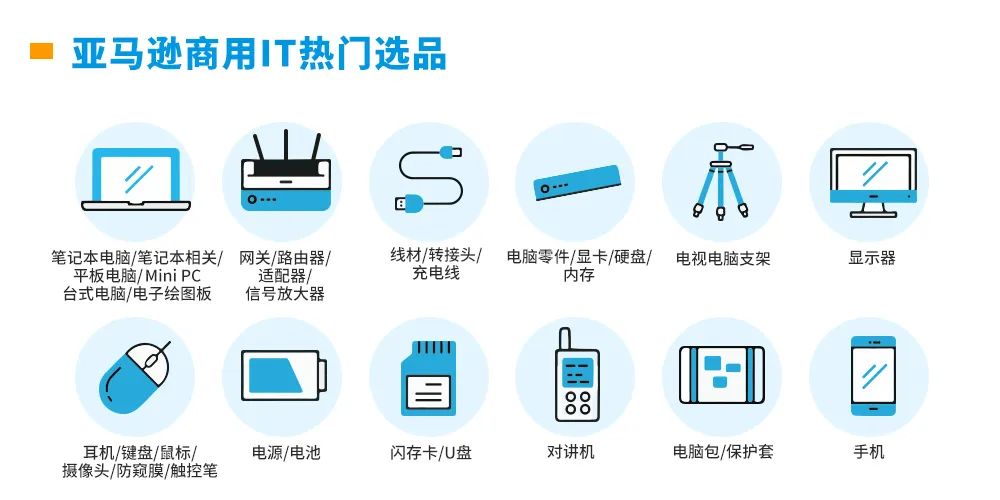 亚马逊全球开店:IT小配件撬动大商机,贴牌厂家变身出海大咖,UtechSmart和Hollyview的出海经历再次证明了中国产品的优秀品质和中国卖家的强劲实力。商用IT类产品作为企业机构采购金额和频率最高的品类,也是亚马逊企业购战略品类之一。亚马逊对卖家开放的品类达20多种,只要您的商品在亚马逊上销售,就会同时面向个人和企业端。其中,办公用品、办公家具、商用IT、家装建材、工具、工业品、劳保安防、科研用品、学校教育用品、医疗用品、酒店餐厨用品等,都是企业买家在亚马逊上经常采购的品类。跨境B2B新趋势已来,与亚马逊企业购一起抓住机遇,和海外企业企业及机构做生意吧!