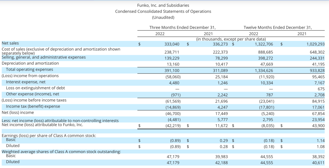 作为一家有着上市光环、众多热销爆款的玩具大牌,在过去的2022年,Funko的财务表现并不理想。